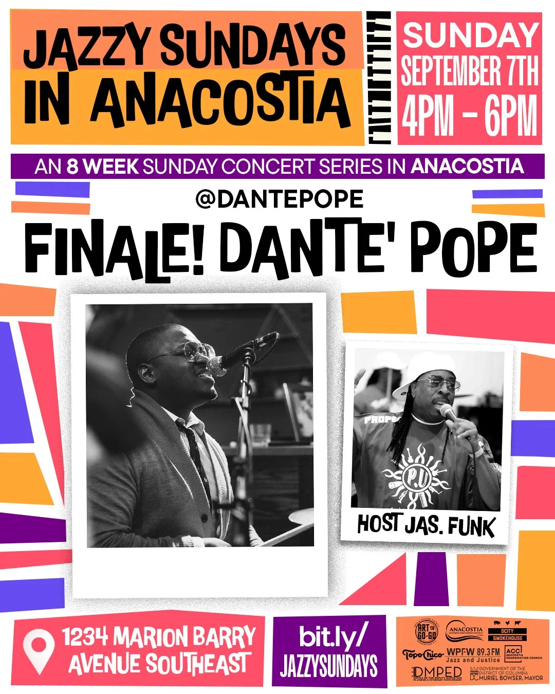 Jazzy Sundays in Anacostia is back with an exciting 8-week concert series celebrating the rich sound of DC jazz. Presented by the Anacostia BID and DCity Smokehouse, this free, family-friendly event runs every Sunday from July 13 through September 7 at 1234 Marion Barry Avenue SE.
