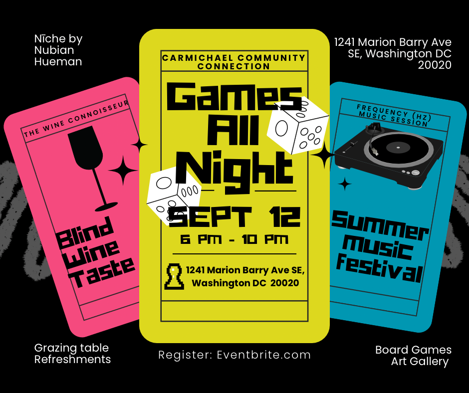This is not your average game night — it’s a full-on celebration of Black culture, community, and creativity taking place during Art All Night Anacostia on Friday, September 12th, from 6–10 PM.
