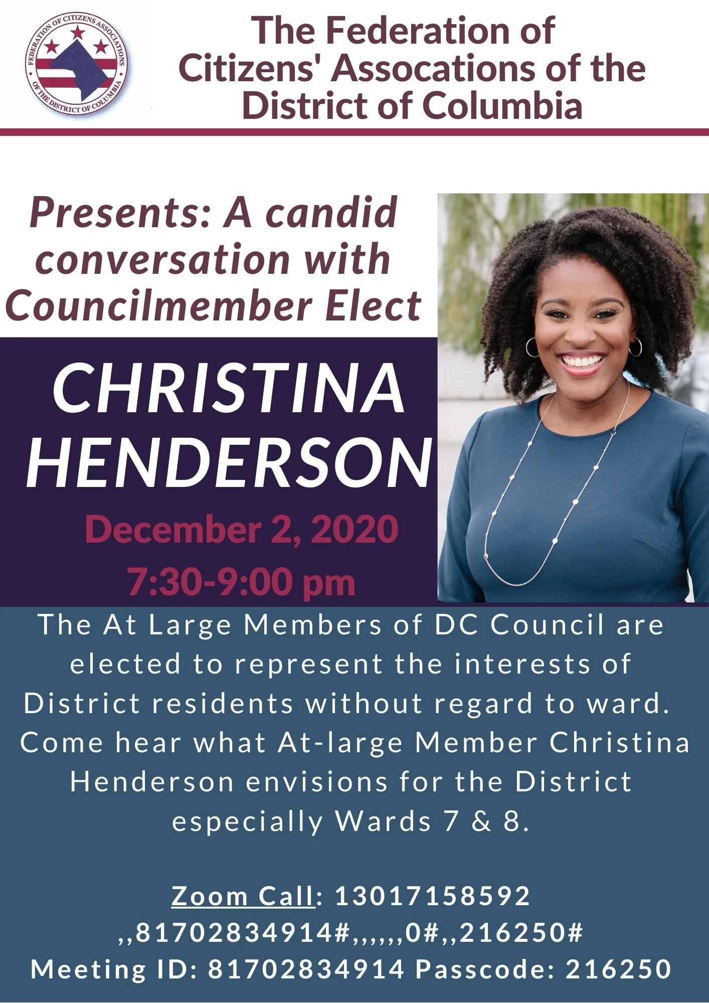 DEC 2 | Anacostia Coordinating Council cohosts Virtual Chat with Councilmember Elect Christina Henderson