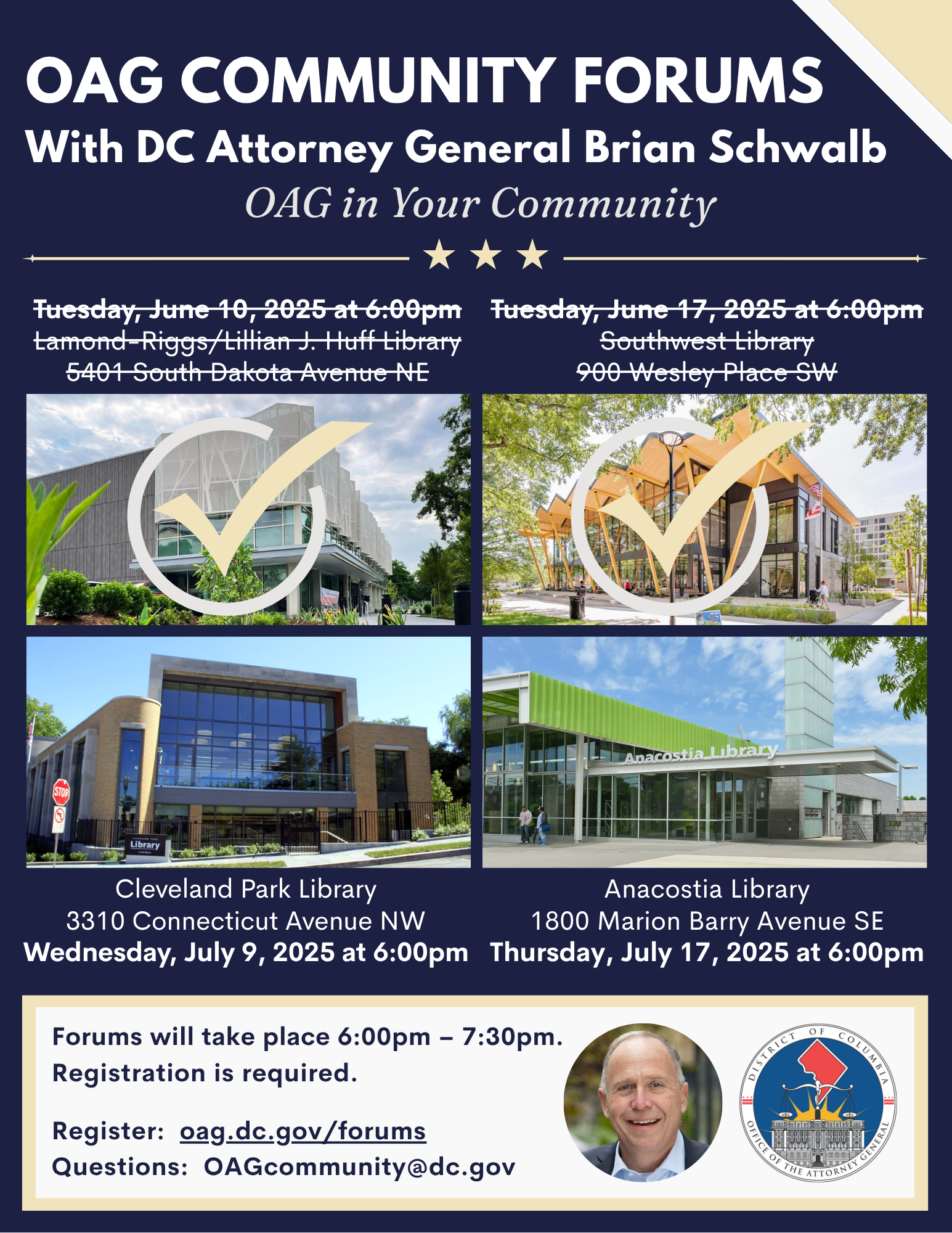District residents will soon have the opportunity to engage directly with Attorney General Brian Schwalb and senior leadership from the Office of the Attorney General (OAG) through a series of community forums.